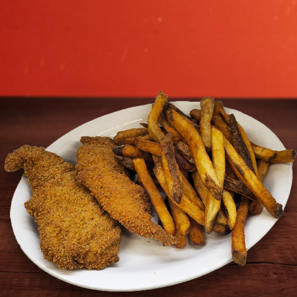 2 Chicken Fingers, Served with Home-Fries or Soup