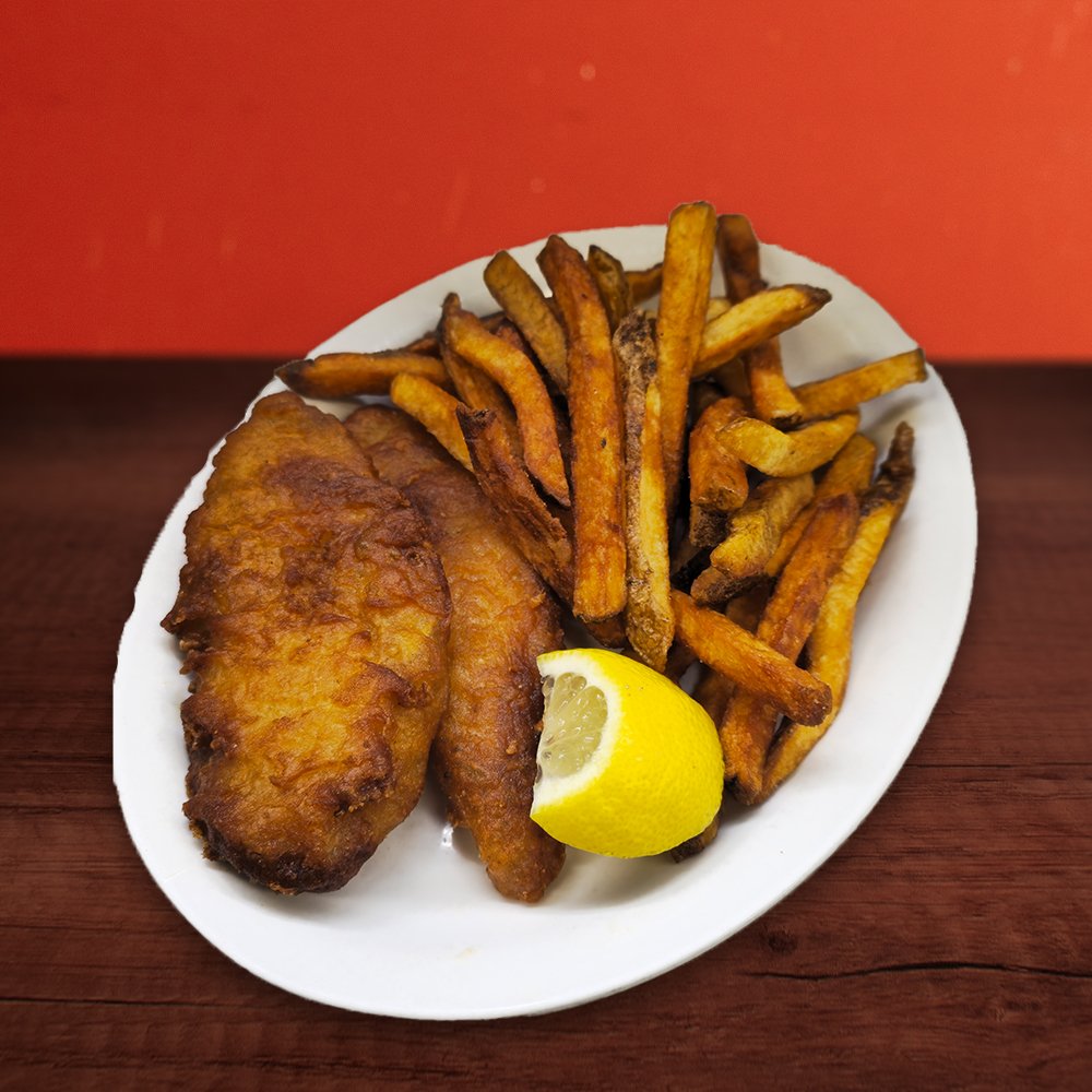 3 pieces of Battered Cod, served with Lemon Wedge & Tartar Sauce.