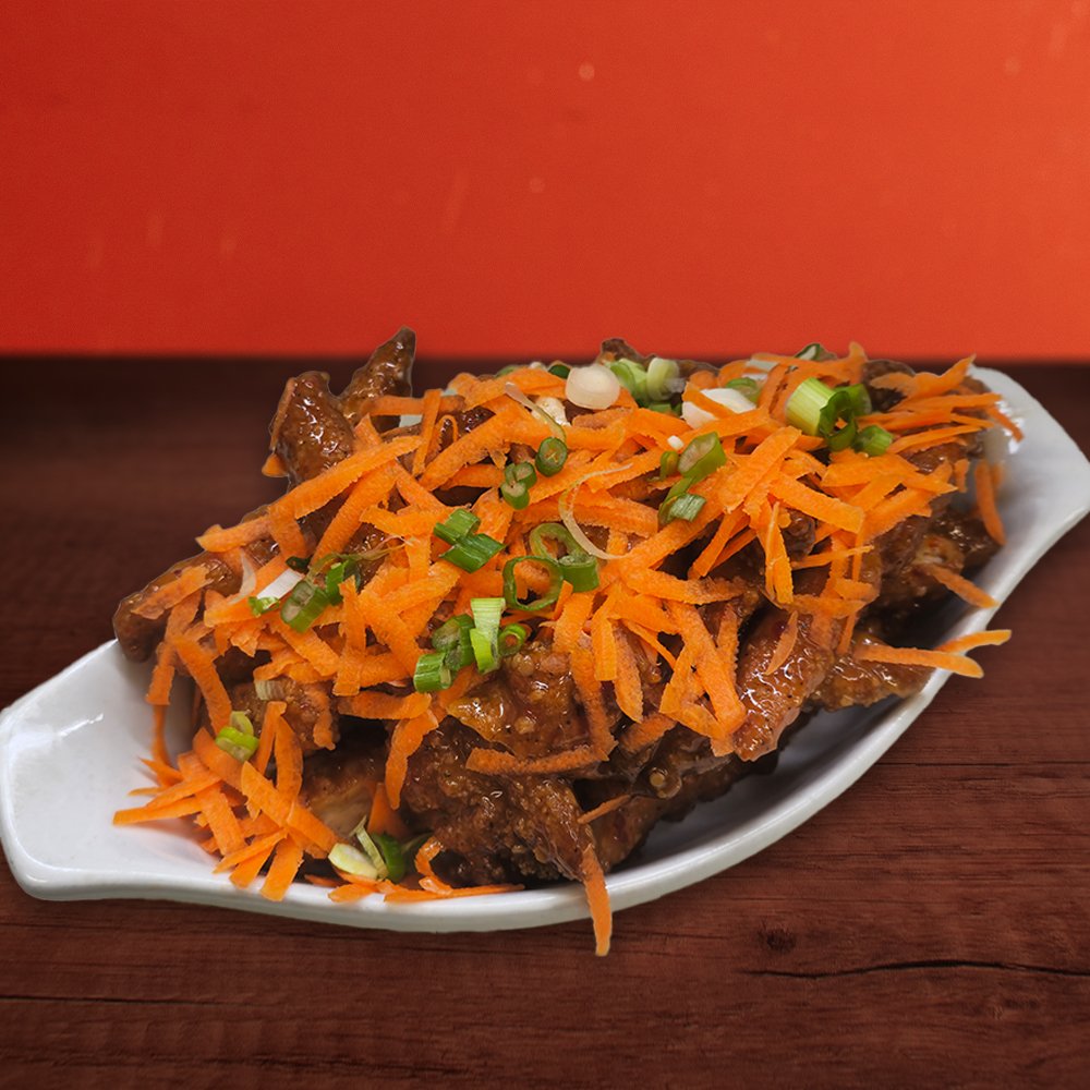 Tossed in Sweet Chili Thai sauce with carrots, green onion, and sesame seeds.